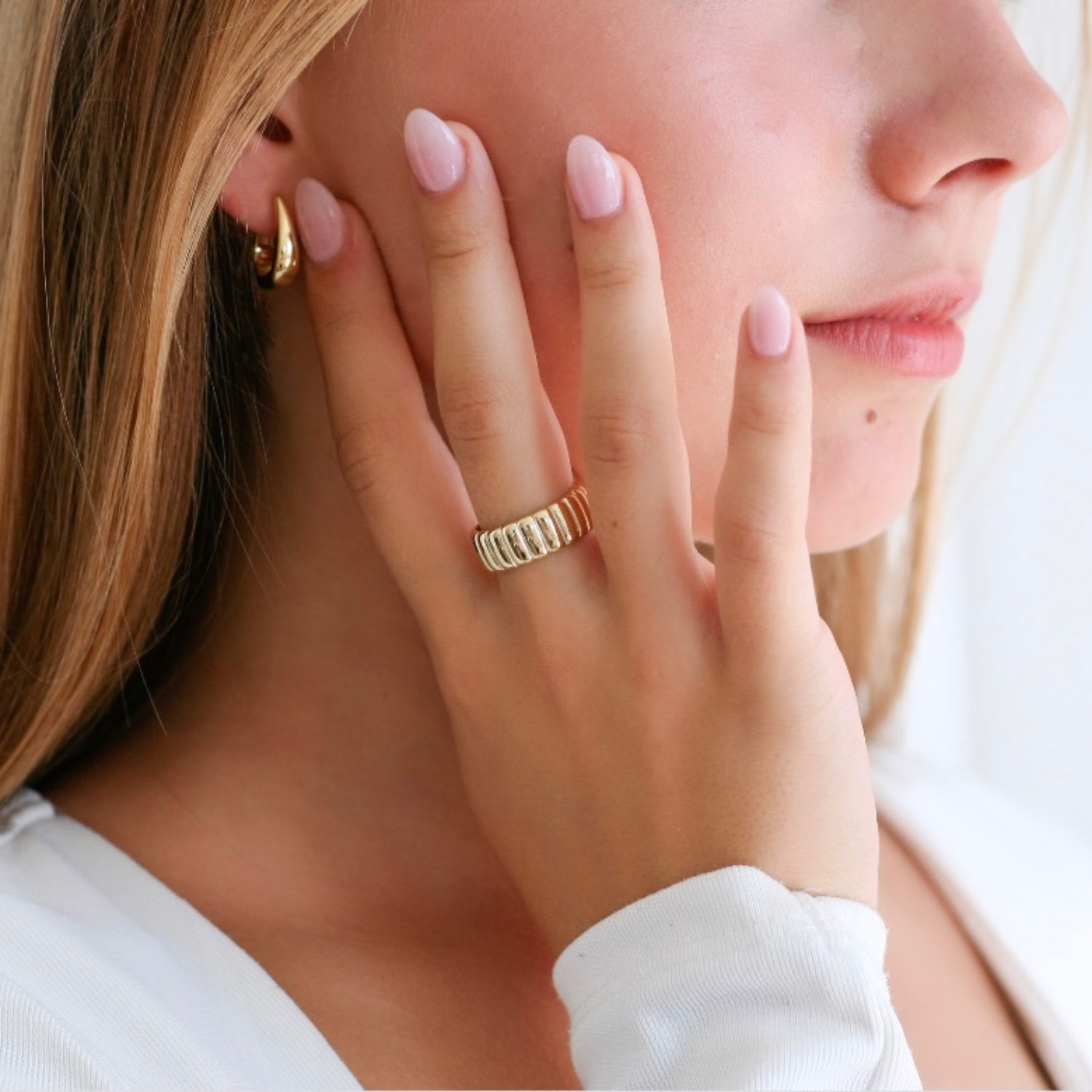 Gold-filled jewelry features a thick layer of solid gold bonded to a durable base, making it more resistant to wear and fading than gold plating. It’s an excellent, low-maintenance option for everyday wear.