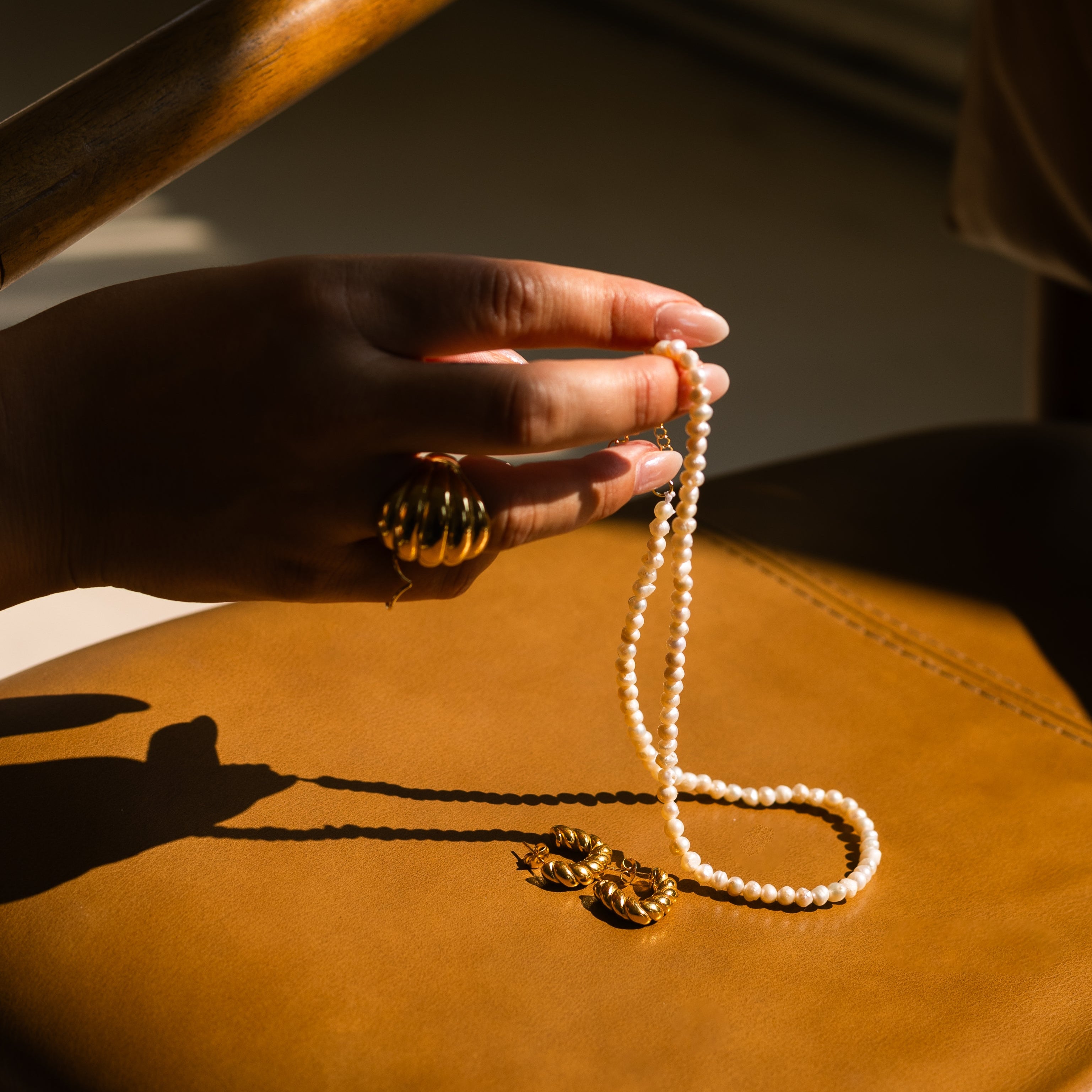 Freshwater pearls are delicate, organic gems known for their soft luster and timeless elegance. Because they are more porous than other stones, they require gentle, thoughtful care.